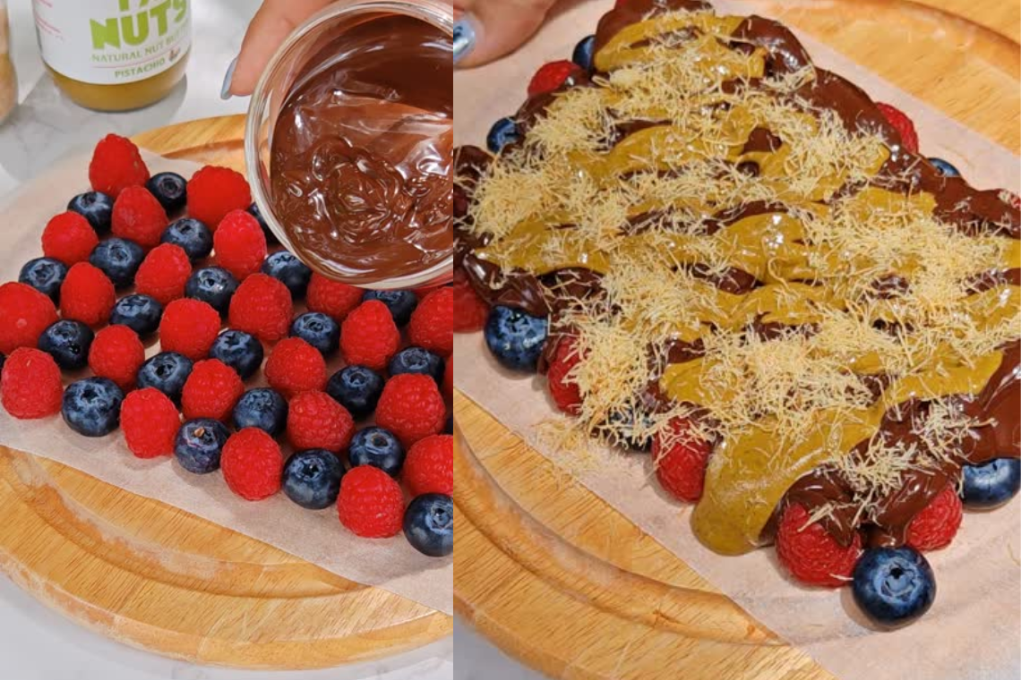 จากนั้นราดด้วย เนยถั่วพิสตาชิโอ จาก I’m Nuts